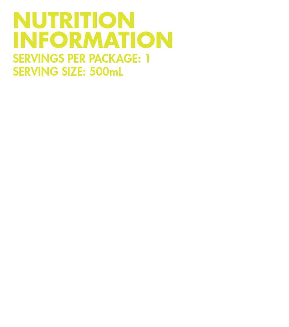 All Ingredients: Purified water, Goodsweet® Blend* (erythritol, stevia), corn fibre, mineral blend (calcium, L-alanyl-L-glutamine, potassium, salt, magnesium), citric acid, natural flavour.